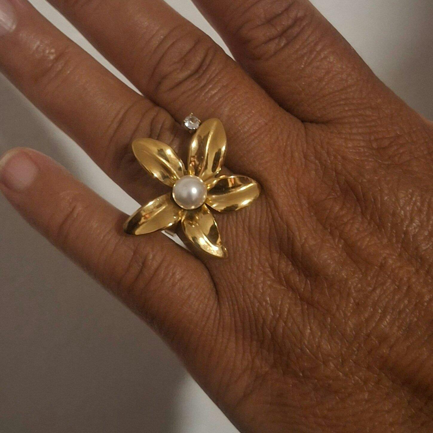 Délicate et féminine, cette bague en acier inoxydable se compose d’une fleur élégante ornée d’une perle en son centre. Ajustable, elle s’adapte facilement à tous les doigts et accompagne vos tenues d’été avec douceur.