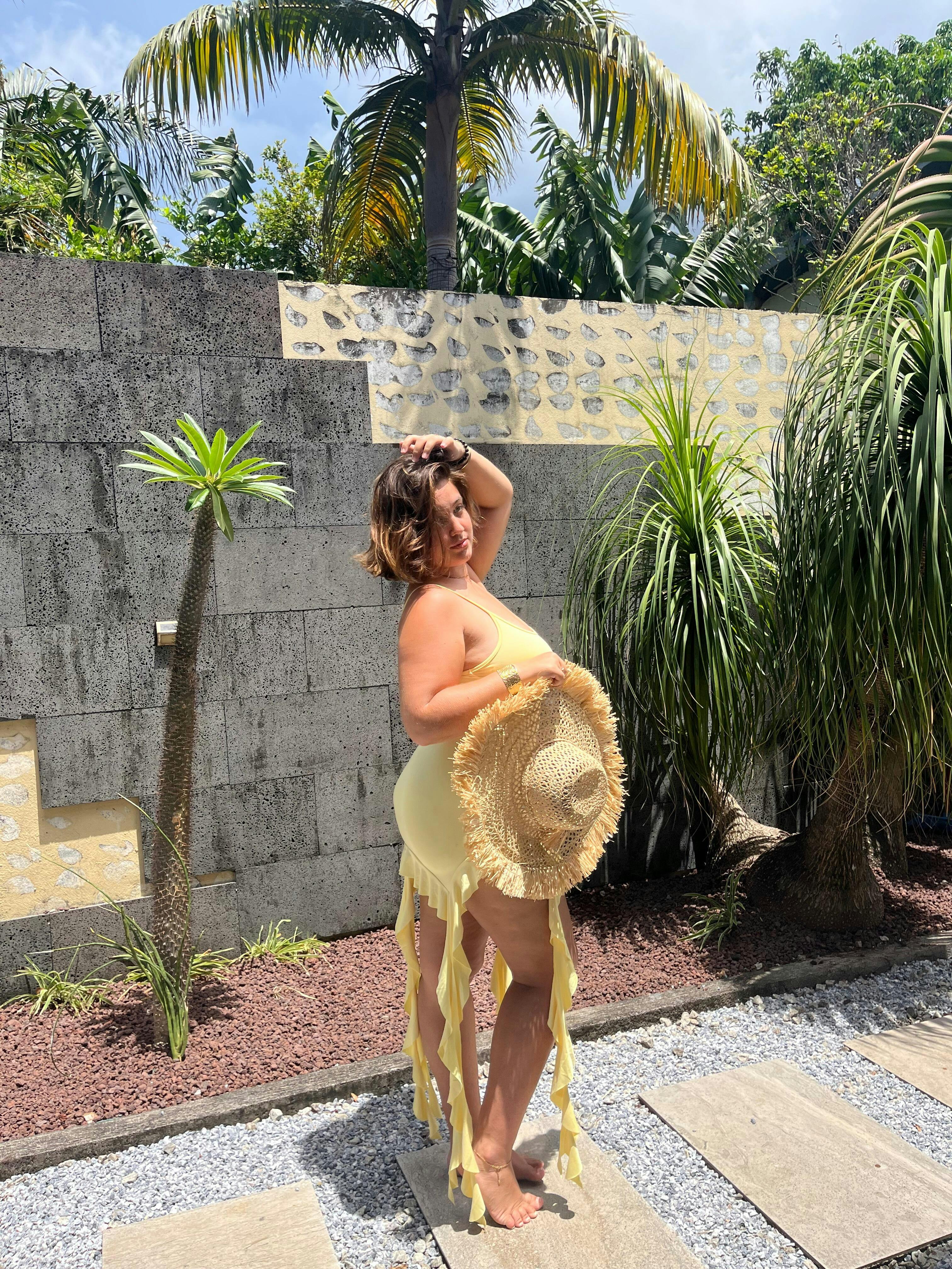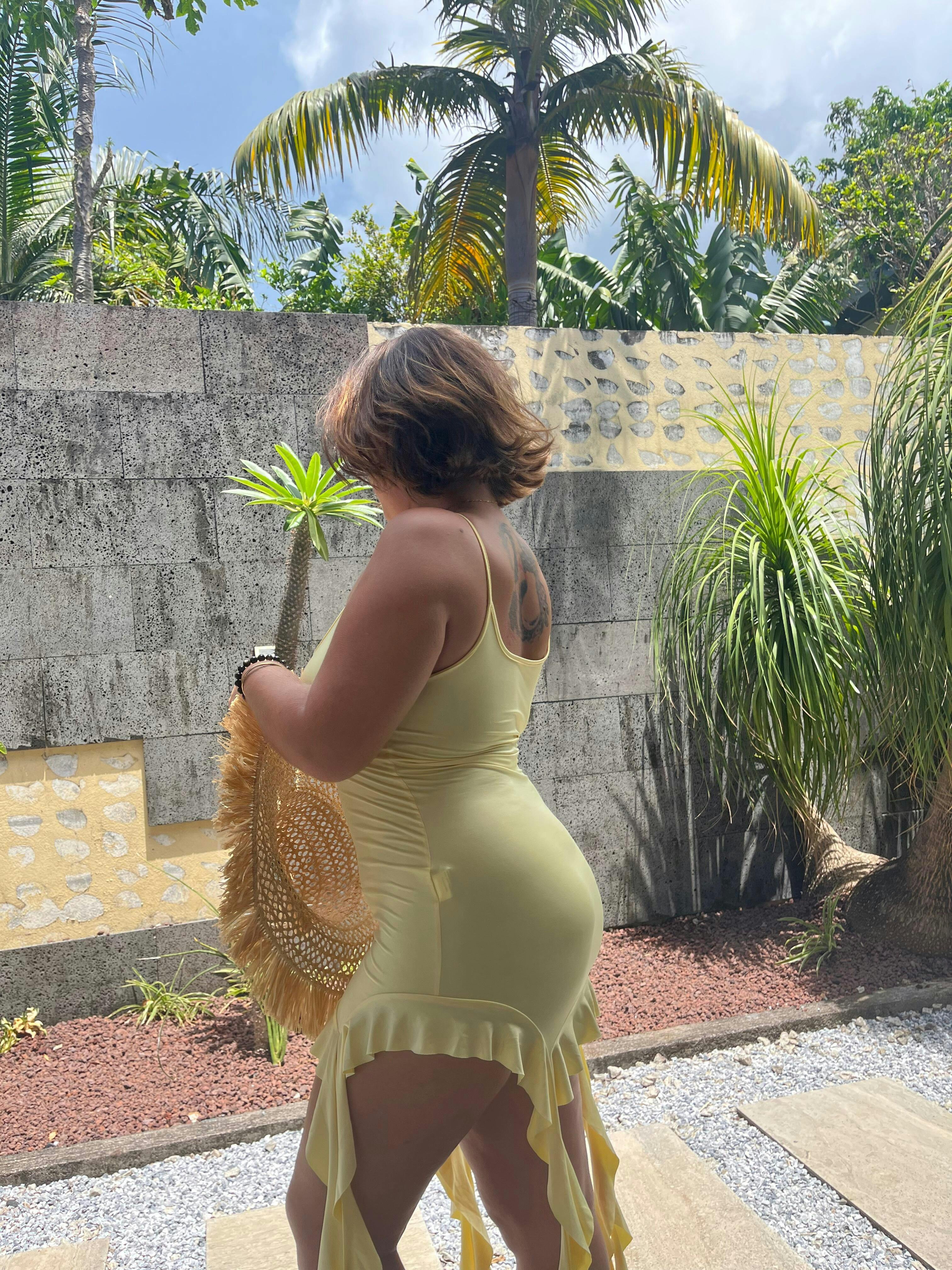 Légère et solaire, la robe Dolcina incarne simplicité et décontraction. Son tissu fluide et confortable glisse sur la peau, tandis que les volants sur les côtés et les fines bretelles apportent une touche féminine subtile. Parfaite pour les journées où l’on veut rester élégante sans effort, cette robe jaune pastel respire la douceur et la fraîcheur estivale.